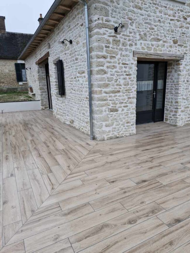 Carrelage 120.5×20.5 de chez ARMONIE série BRICCOLA coloris miele antidérapant